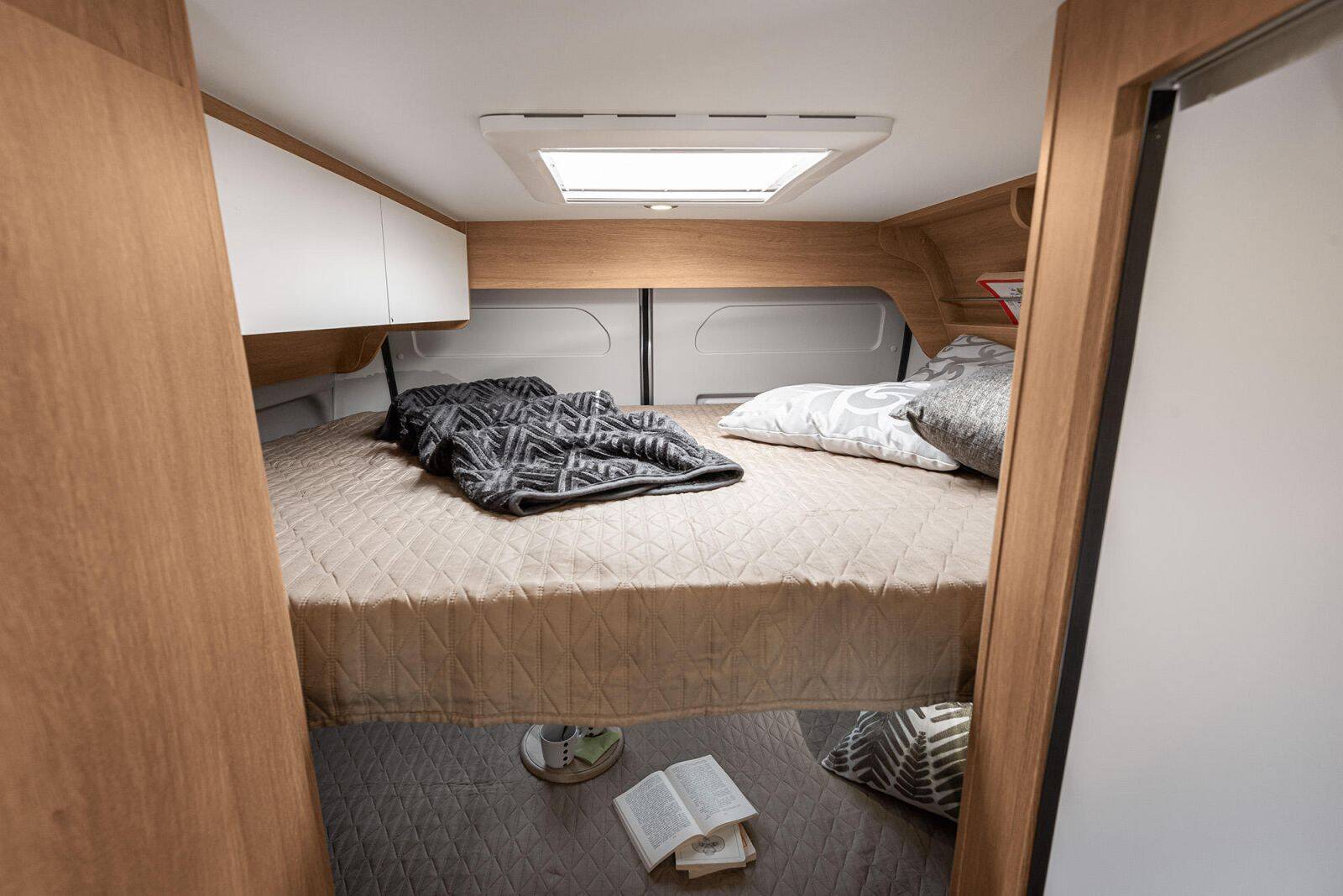 Il est doté d’un grand réfrigérateur à compresseur de 90 litres, d’une cuisine compacte et fonctionnelle ainsi que d’une salle de bain avec douche « VARIO », combinée au système de chauffage Truma Combi. Le châssis est basé sur Citroën Jumper ou Peugeot Boxer, avec une motorisation autour de 2,2 litres (≈ 120 CV) selon les configurations. La charge utile est de l’ordre de ~ 650‑700 kg ce qui permet d’emporter bagages, matériel de sport ou accessoires sans se sentir limité.