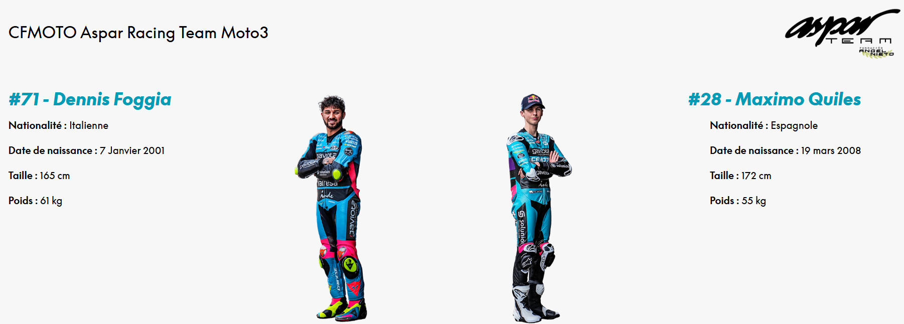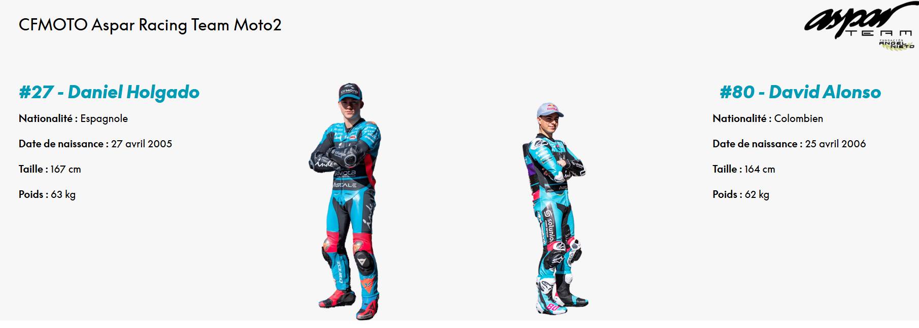 L’équipe CFMOTO Aspar Racing se joint en 2025 pour lutter pour les titres Moto2 et Moto3. Après le titre Pilote et constructeurs en Moto3 en 2024, le team renouvelle son partenariat dans les deux catégories pour l’année 2025.